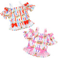 サマーコレクション第3弾、マリーンマフィー総柄オフショルダーTシャツ♥ 前開きボタンの肩紐付きオフショルダーTシャツ♥ ウエストシャーリングがちょっぴりお姉さんなシルエットにしてくれます★ ビビッドにはホワイトチュールと赤リボン、パステルにはペールピンクのチュールとリボン♪ フロントだけじゃなく、バックにもついているのがアースマジックスタイルです★ 肩紐には長さ調整ボタンもついています★ 総柄スカートとのセットアップはもちろん、デニムとの相性も◎ |