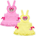 ナチュラルなコットンレースシリーズ★ フラワー柄レース生地を、ペールピンクとクリームイエローのアースマジックカラーに仕立てました♥ ハート型の胸当てに大きなマフィーちゃんワッペンがついたジャンパースカート♪ 両サイドにはポケットとマットなサテンリボン、左下のキューピッドハートのロゴワッペンもポイントです☆ 背面にはマフィーちゃんのバックタグ、肩紐はもちろん長さ調整可能♥ スカート部分には裏地もついているので透け対策もOK♪ インナーを変えることで多彩なコーデができるジャンパースカートです♥ |