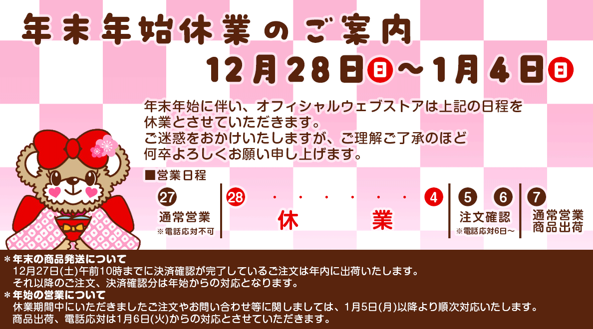 ※休前日15:00までにご入金の確認が取れない場合は、休み明けの発送となりますのでご了承ください。